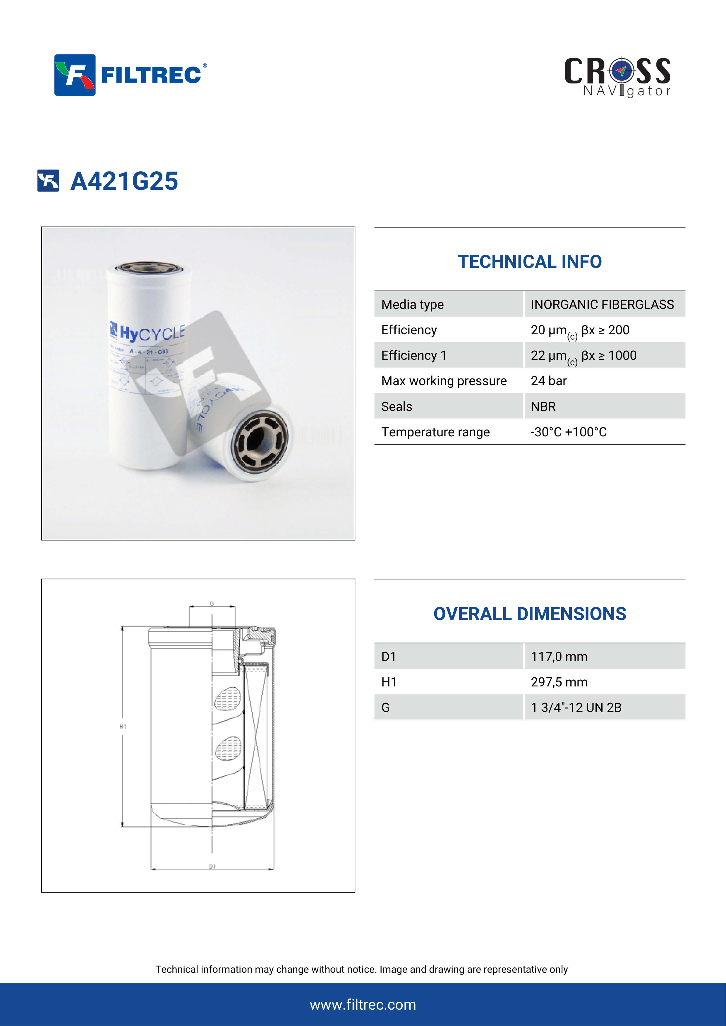 Genuine Filtrec A421G25. This Filtrec element is designed to meet or exceed the quality and performance of brand OEM’s ensuring superior filtration performance and long-lasting durability.