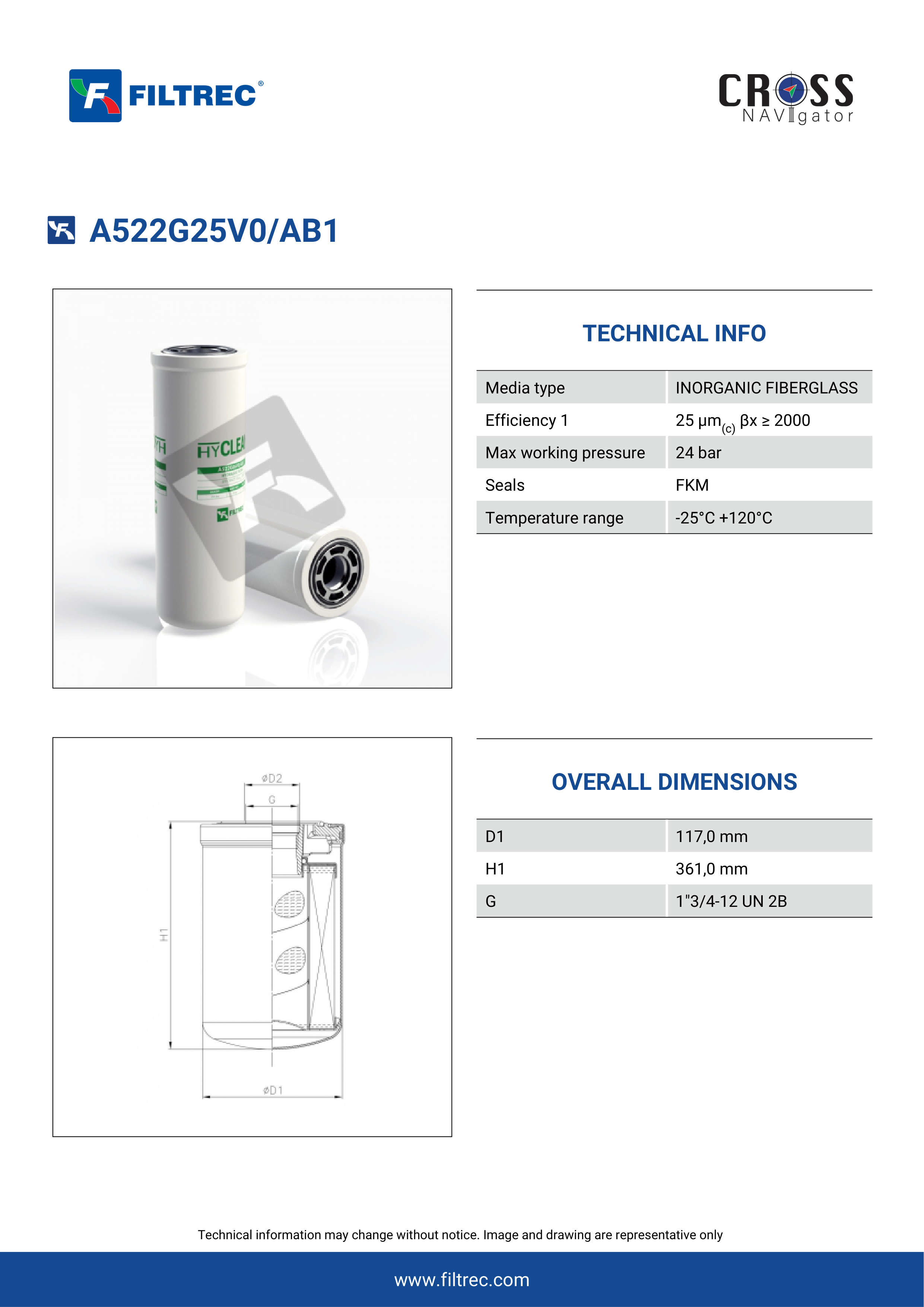 Genuine Filtrec A522G25V0/AB1. This Filtrec element is designed to meet or exceed the quality and performance of brand OEM’s ensuring superior filtration performance and long-lasting durability.Engineered with their high performance media and a durable design, the A522G25V0/AB1 provides reliable and consistent performance over its lifespan, even in harsh operating environments. When you order from FilterFinder, you can trust that you are getting a reliable and high-quality replacement filter that will keep your system running smoothly.