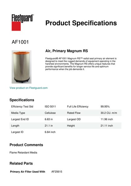 Fleetguard AF1001 Air, Primary Magnum Rs