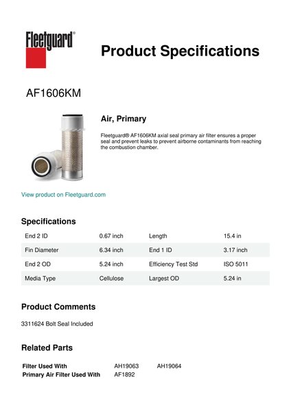 Fleetguard AF1606KM Air, Primary