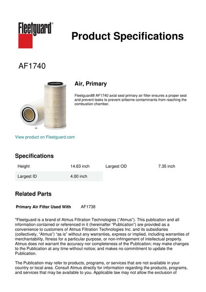 Fleetguard AF1740 Air, Primary