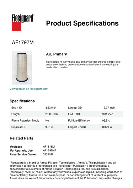 Fleetguard AF1797M Air, Primary