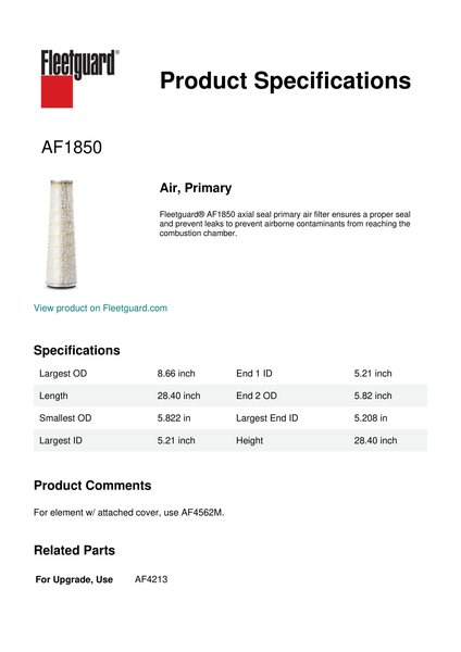 Fleetguard AF1850 Air, Primary