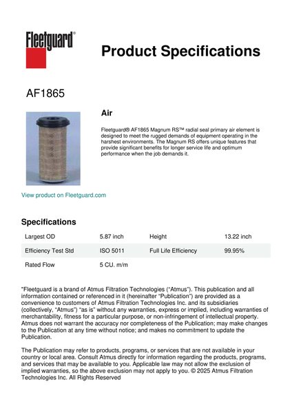 Genuine Fleetguard AF1865