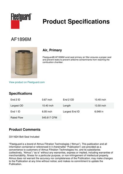 Fleetguard AF1896M Air, Primary