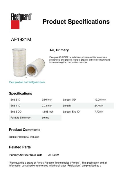 Fleetguard AF1921M Air, Primary