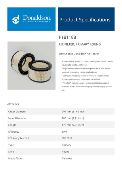 Why Choose Donaldson Air Filters?Strong, pliable gasket is compressed against the air cleaner housing to create a tight seal.