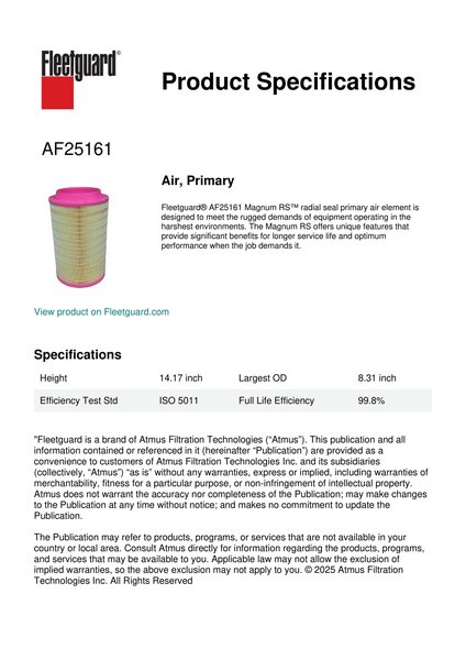 Fleetguard AF25161 Air, Primary