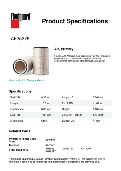 Fleetguard AF25276 Air, Primary