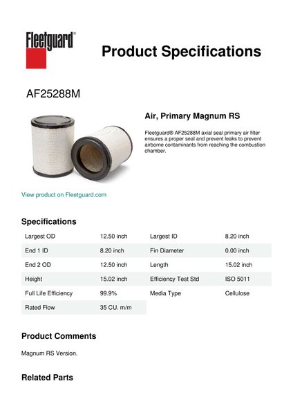 Fleetguard AF25288M Air, Primary Magnum Rs