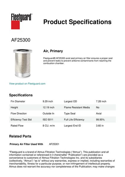 Fleetguard AF25300 Air, Primary