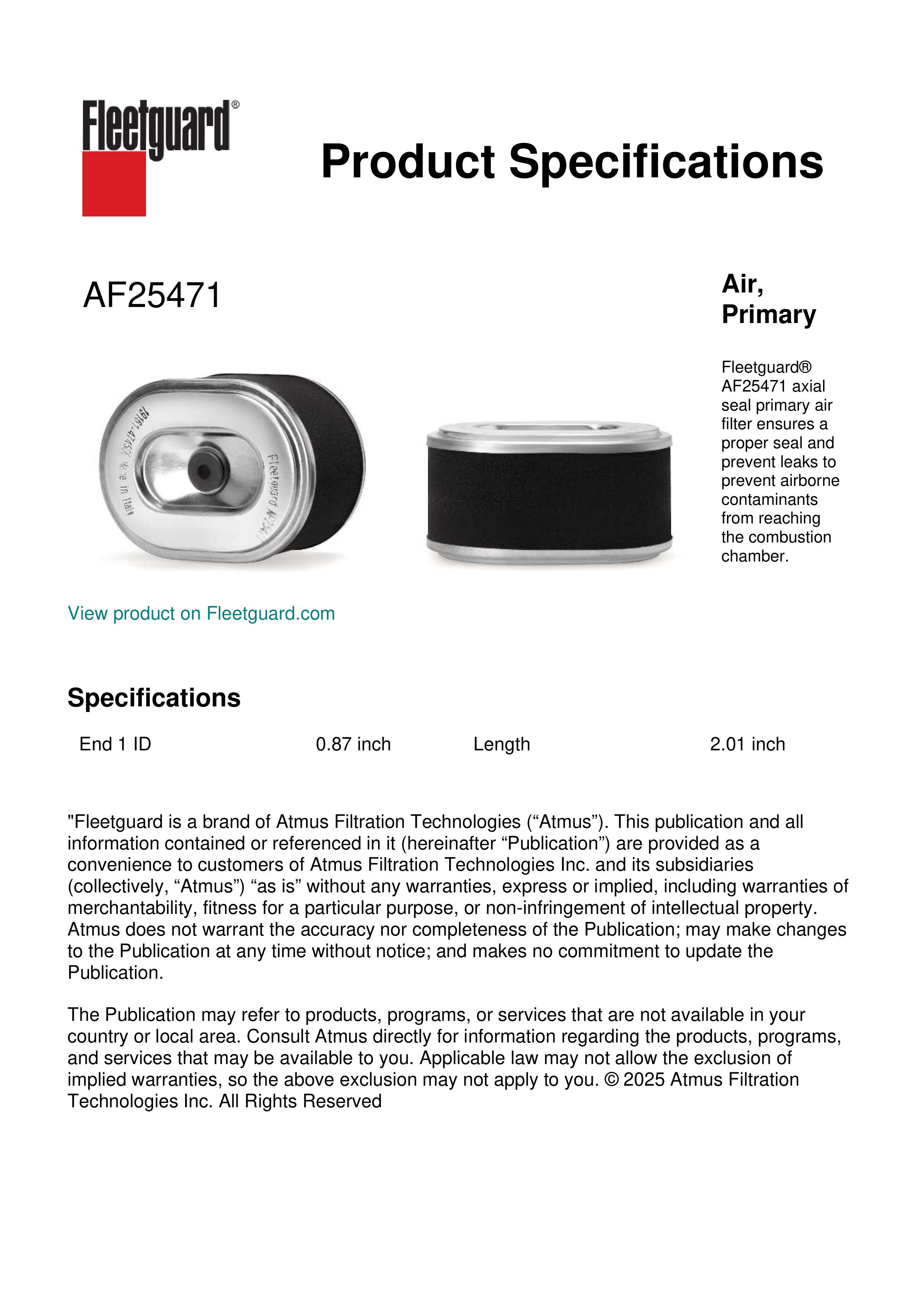 Fleetguard AF25471 Air, Primary