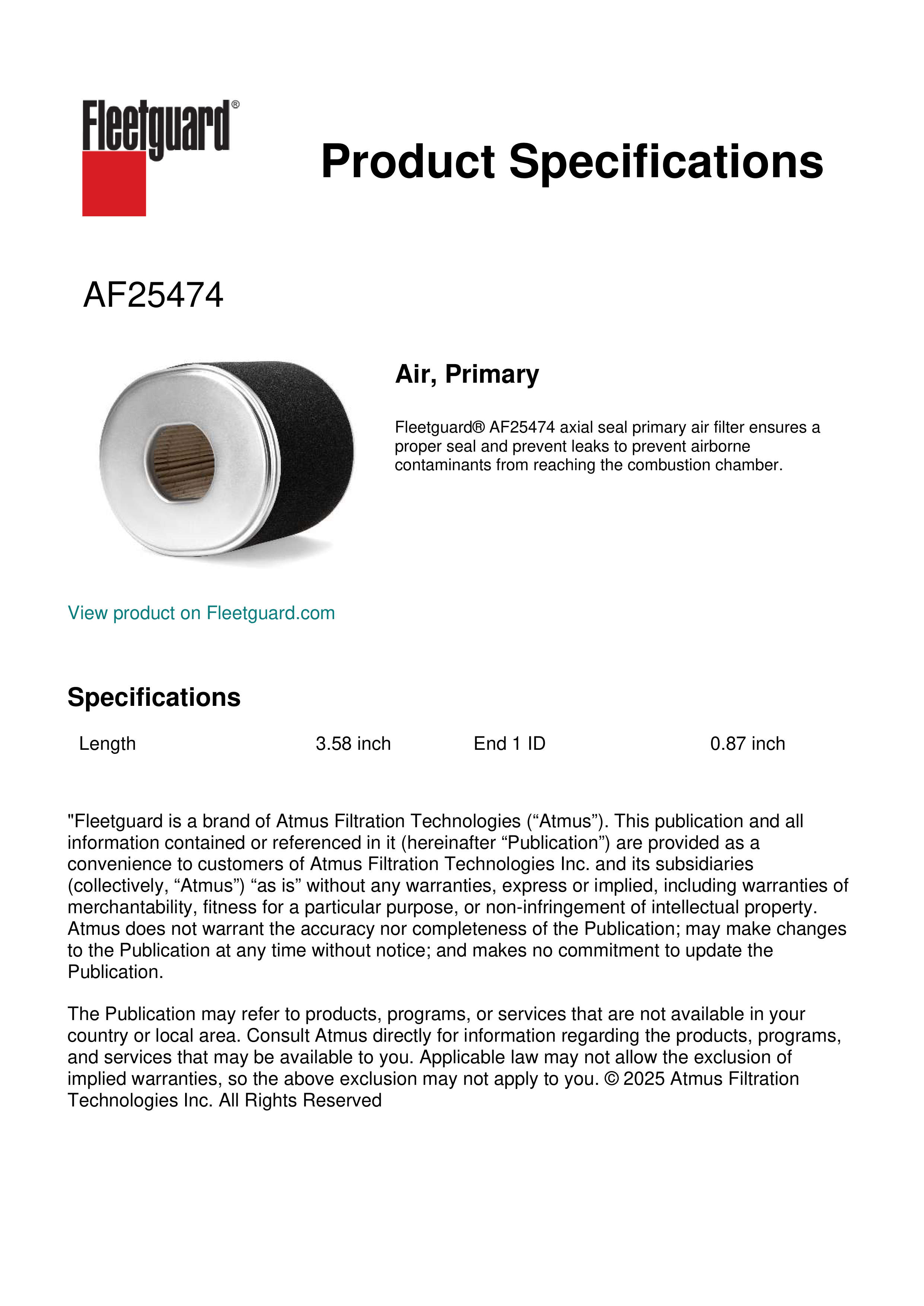 Fleetguard AF25474 Air, Primary