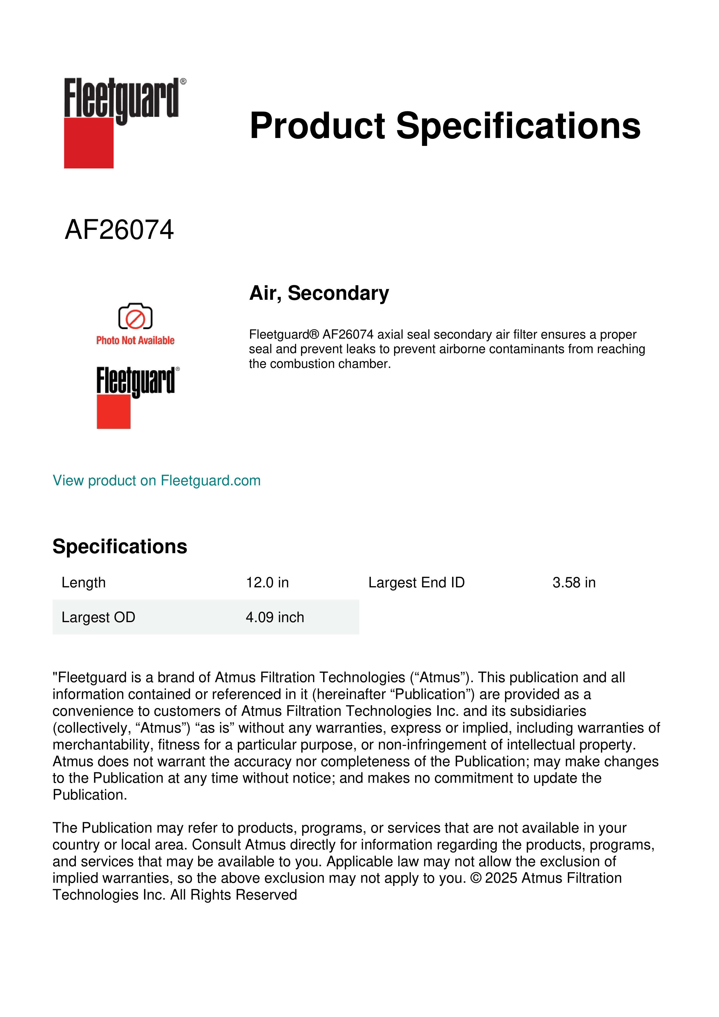 Genuine Fleetguard AF26074