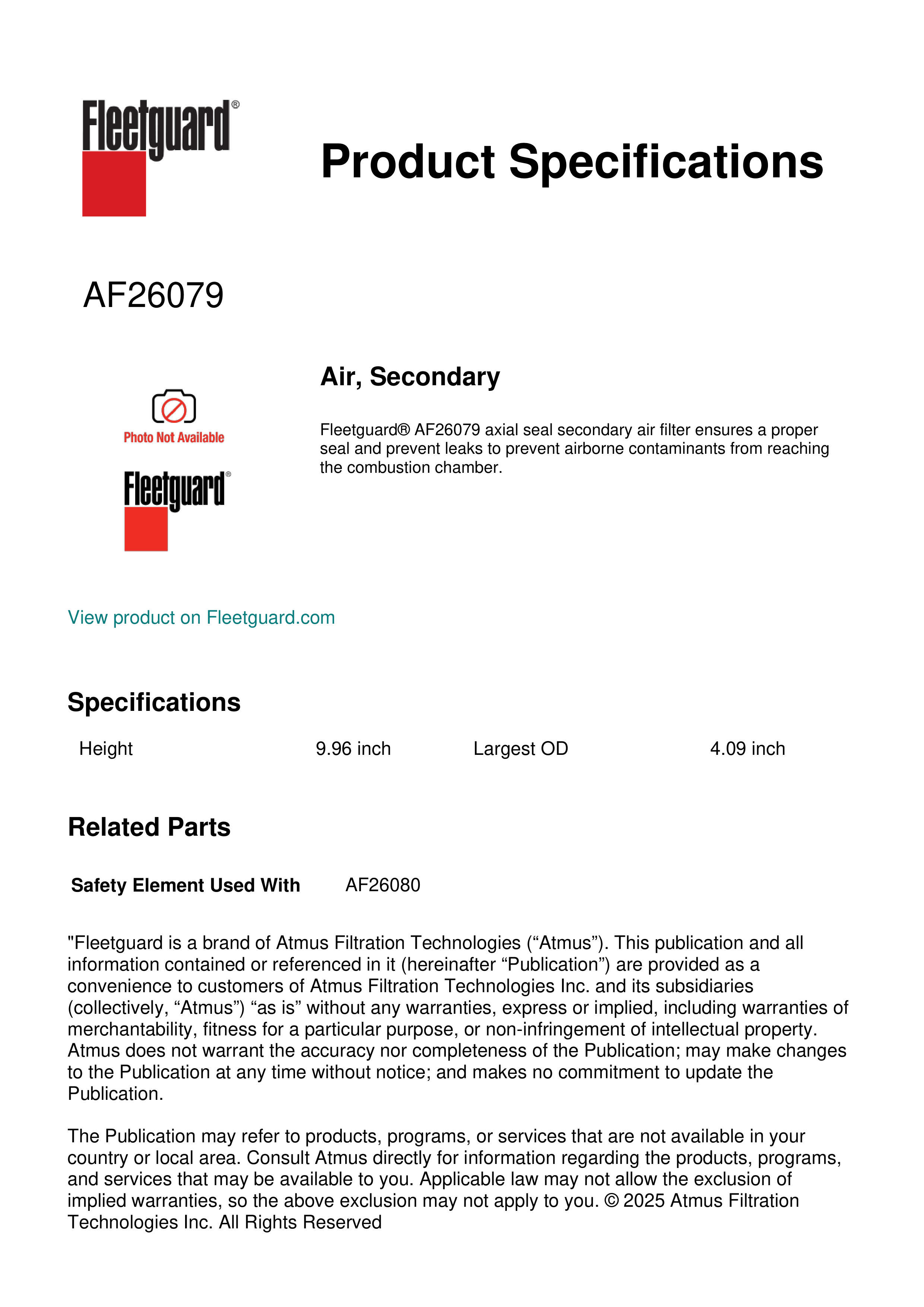 Fleetguard AF26079 Air, Secondary