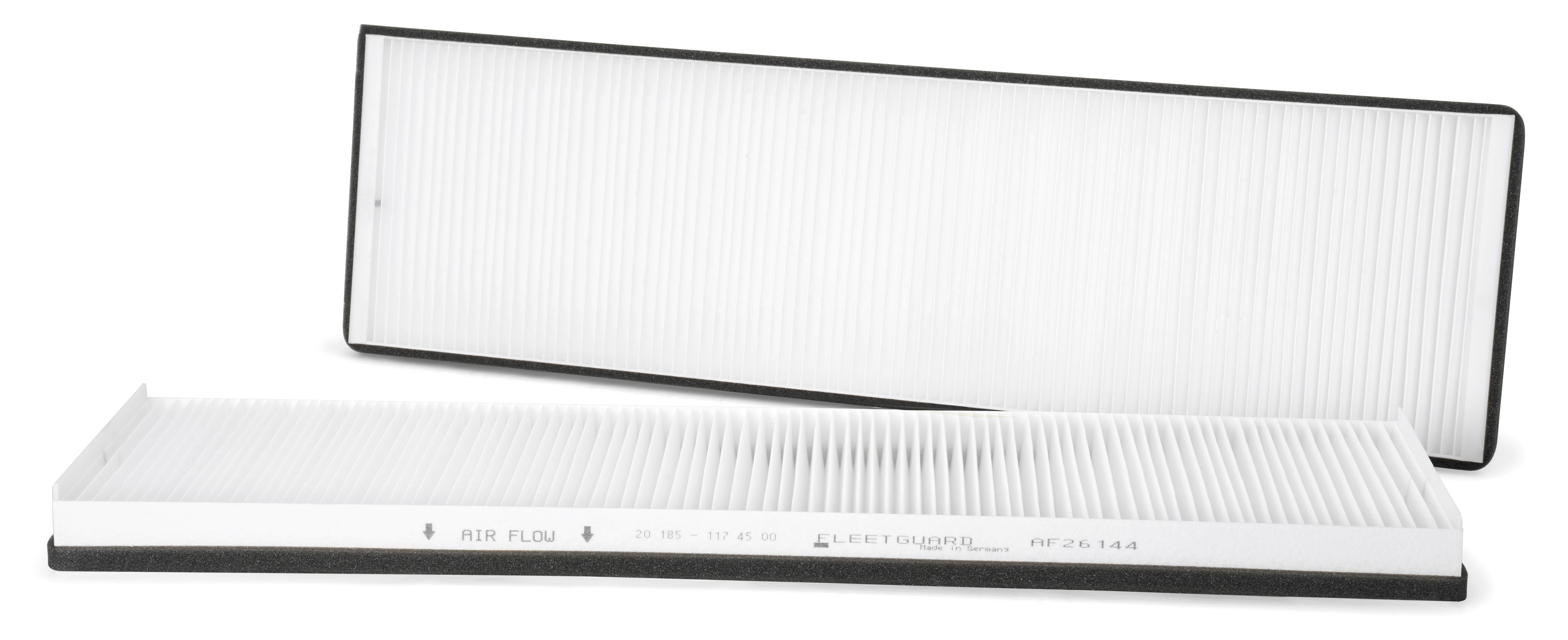 Fleetguard® AF26144 panel cabin air filter provides clean air in the cab which means a clean work environment. Breathing cleaner air can lead to longer and more productive working hours.