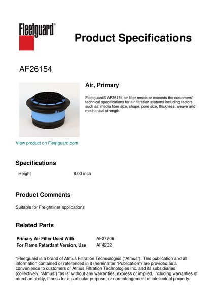 Fleetguard AF26154 Air, Primary