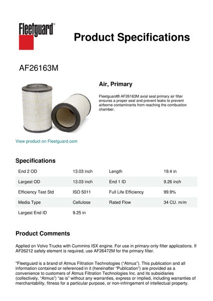 Fleetguard AF26163M Air, Primary