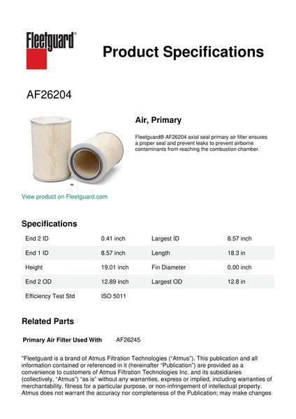 Fleetguard AF26204 Air, Primary