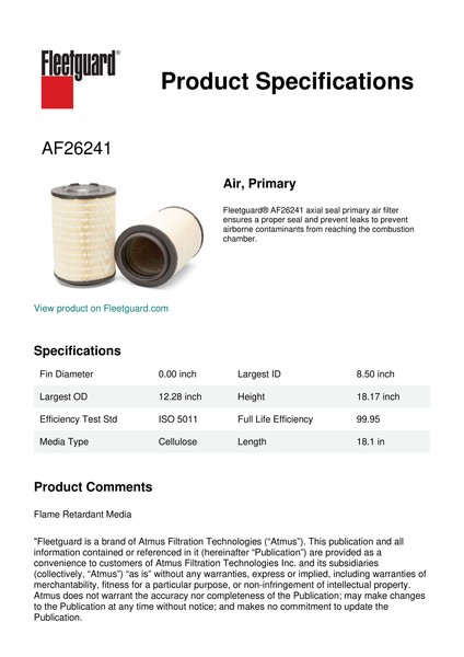 Fleetguard AF26241 Air, Primary