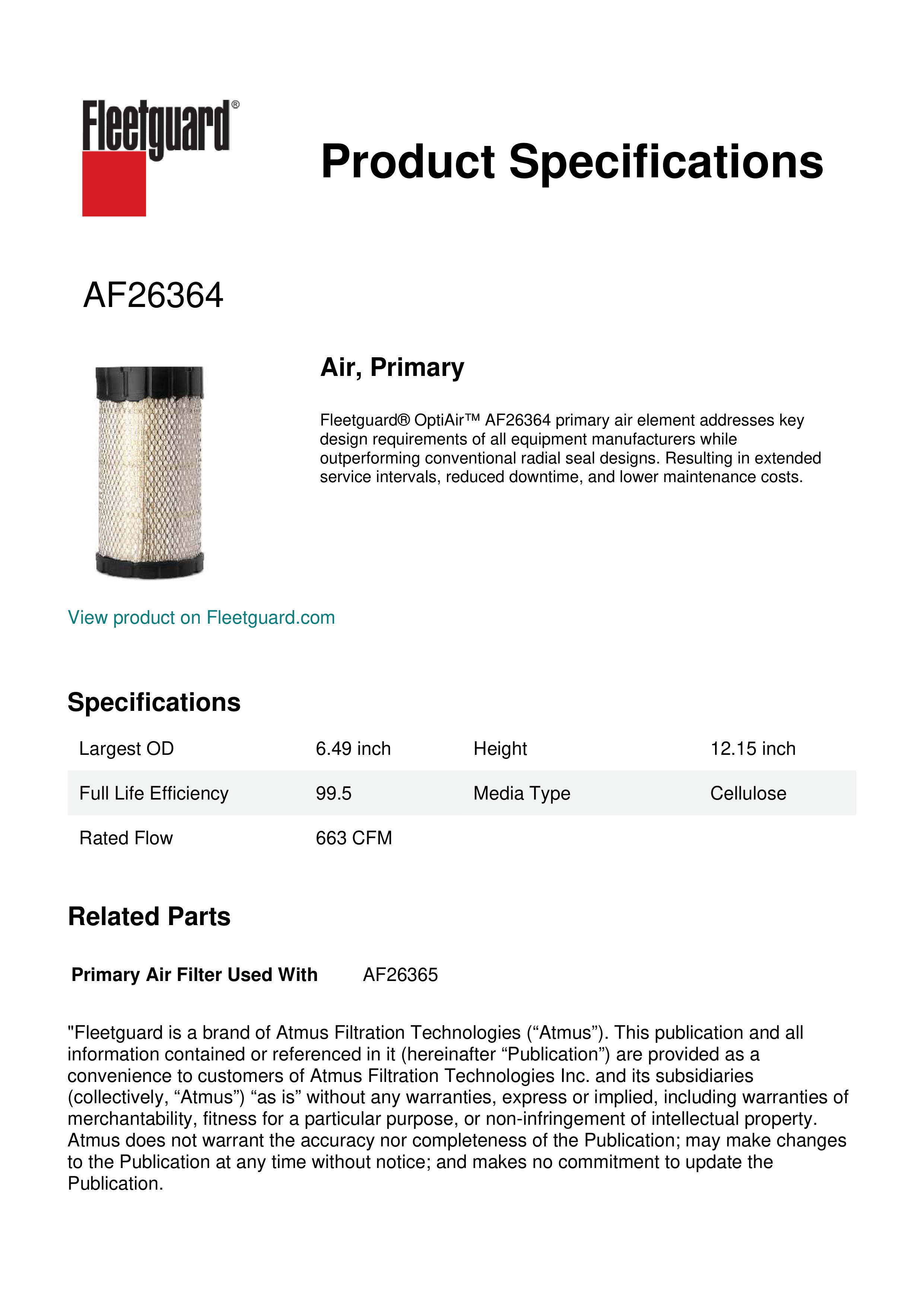 Fleetguard AF26364 Air, Primary