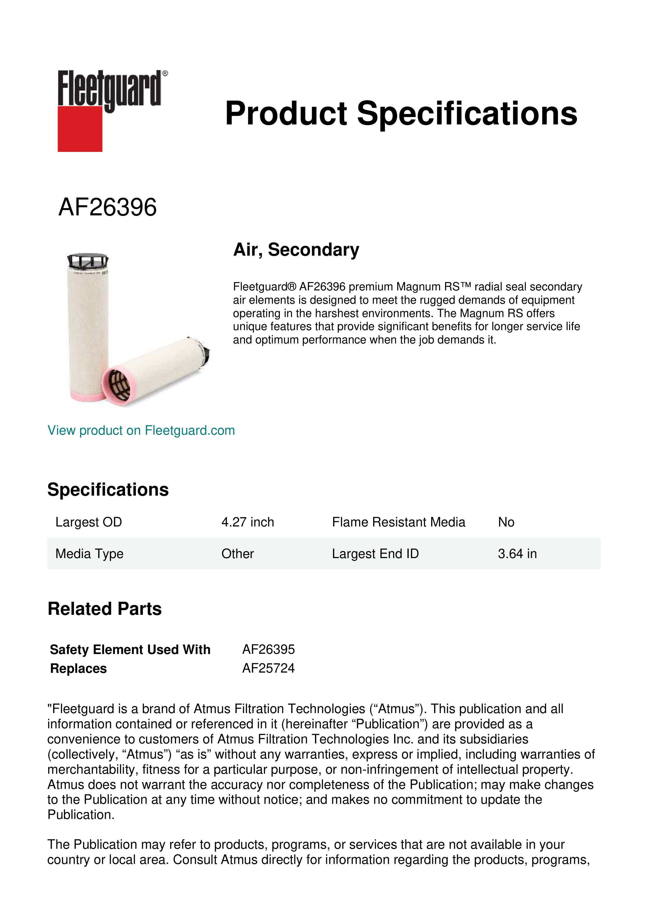 Fleetguard AF26396 Air, Secondary
