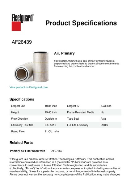 Fleetguard AF26439 Air, Primary
