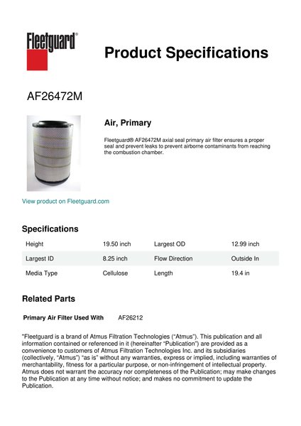 Fleetguard AF26472M Air, Primary