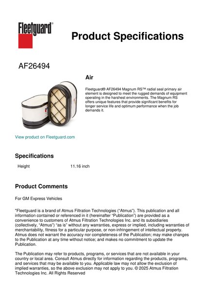 Fleetguard AF26494 Air