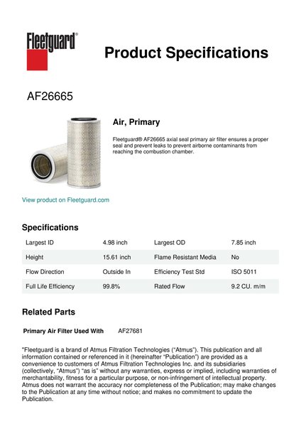 Fleetguard AF26665 Air, Primary