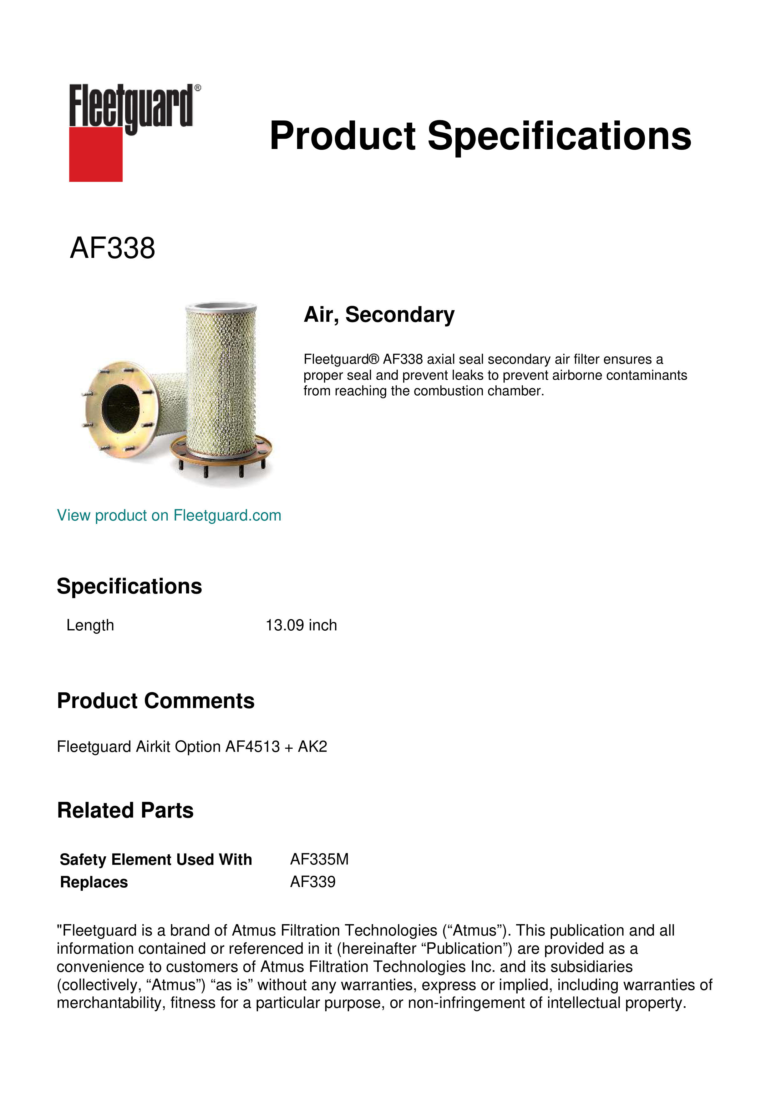 Fleetguard AF338 Air, Secondary