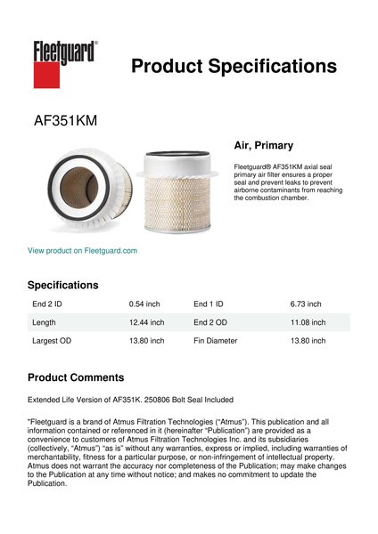 Fleetguard AF351KM Air, Primary