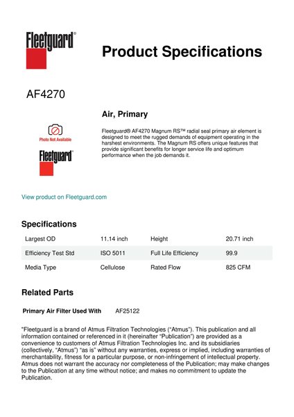 Fleetguard AF4270 Air, Primary