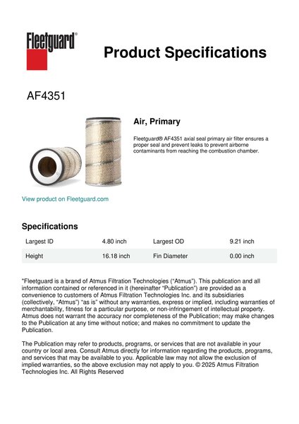 Fleetguard AF4351 Air, Primary
