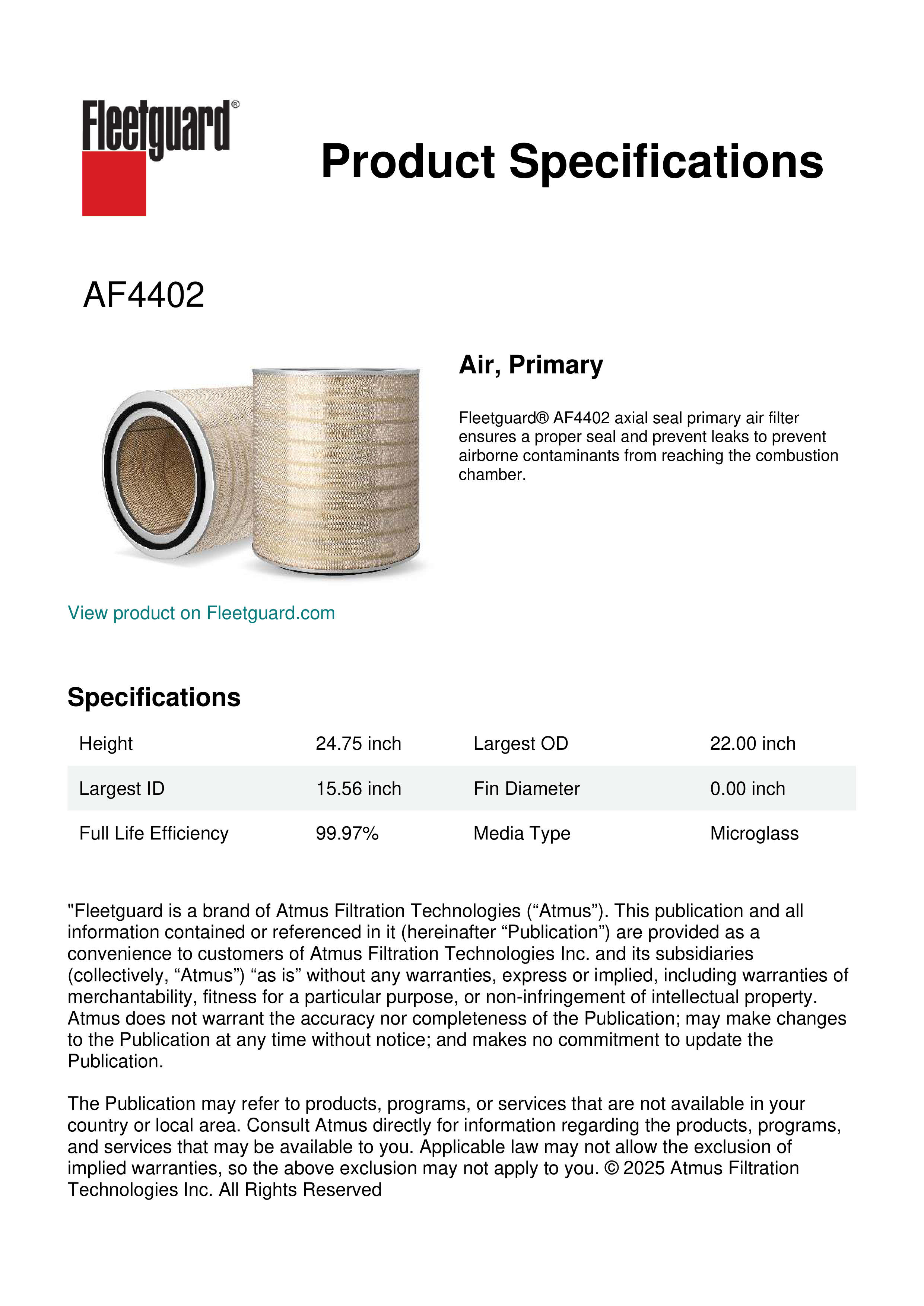 Fleetguard AF4402 Air, Primary