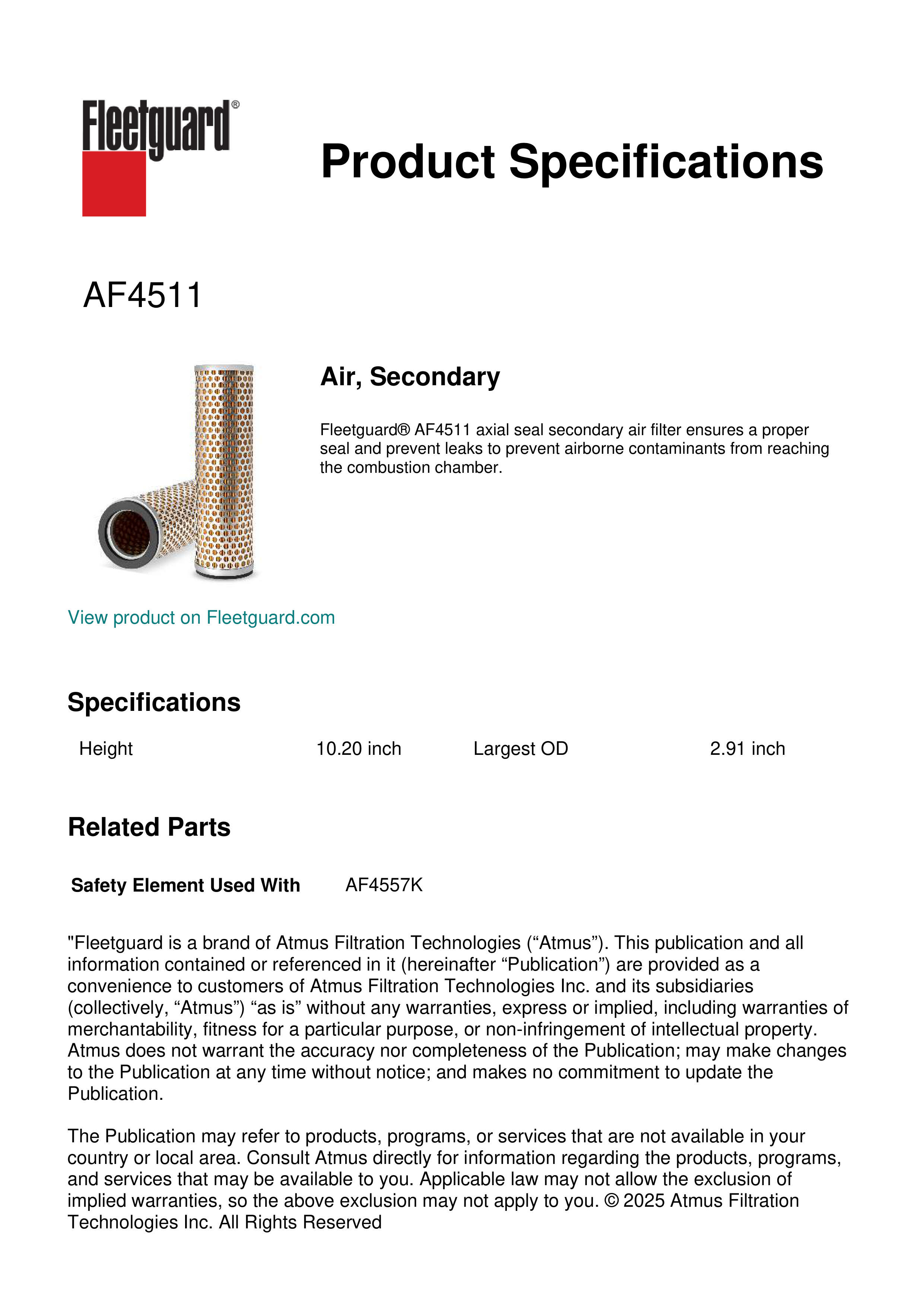 Fleetguard AF4511 Air, Secondary