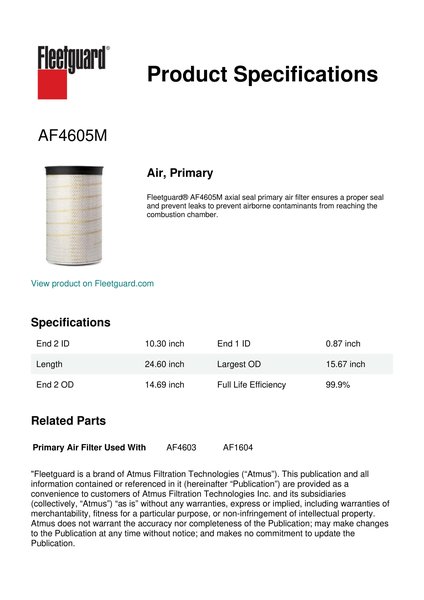 Fleetguard AF4605M Air, Primary