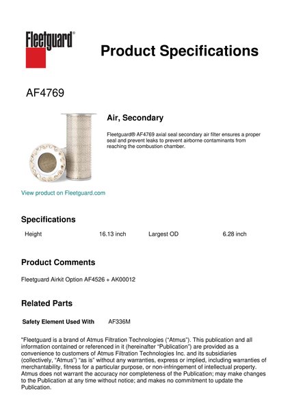 Fleetguard AF4769 Air, Secondary