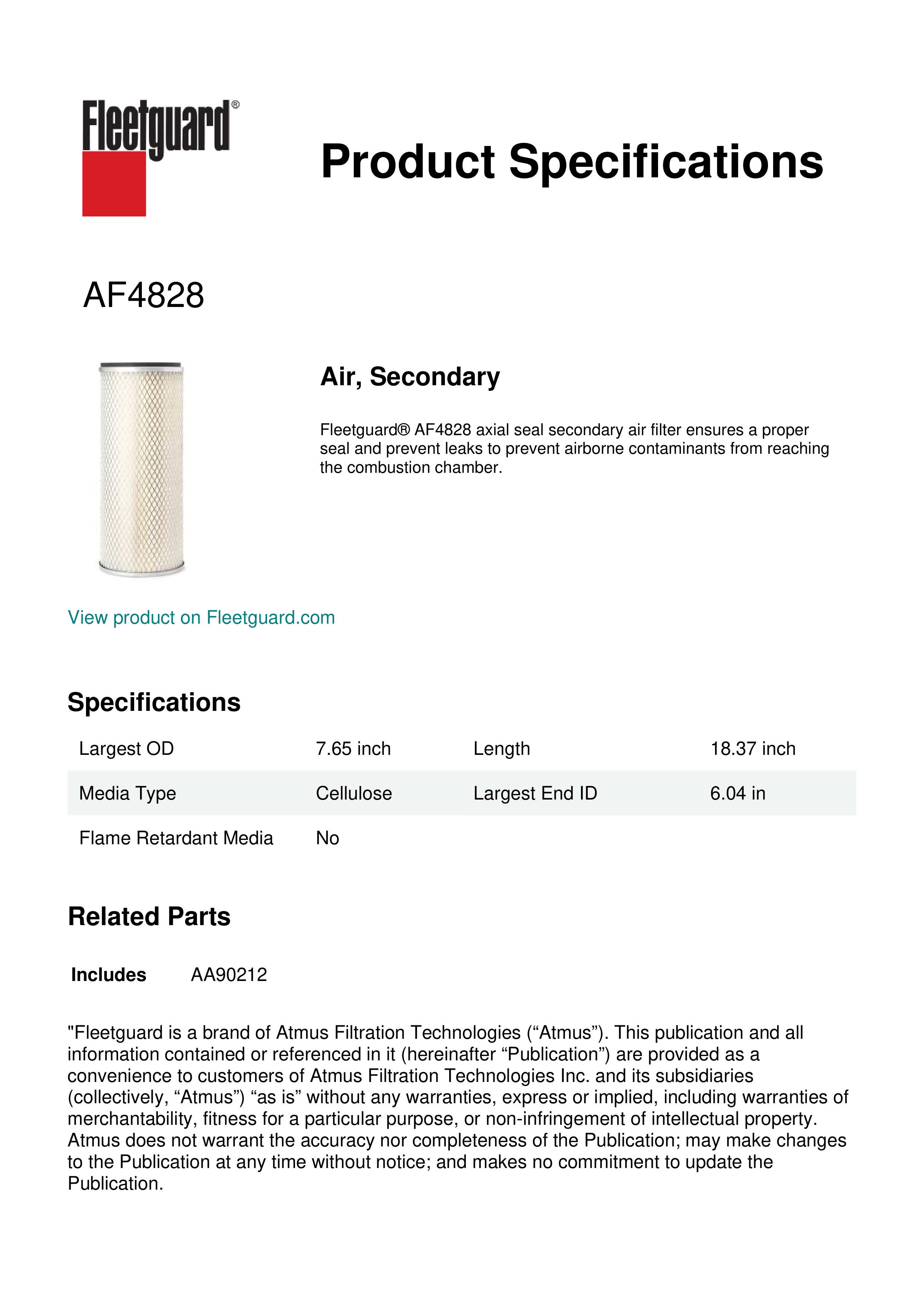Fleetguard AF4828 Air, Secondary