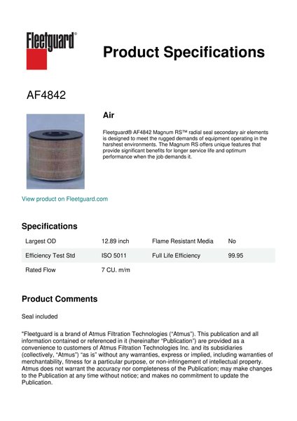 Genuine Fleetguard AF4842