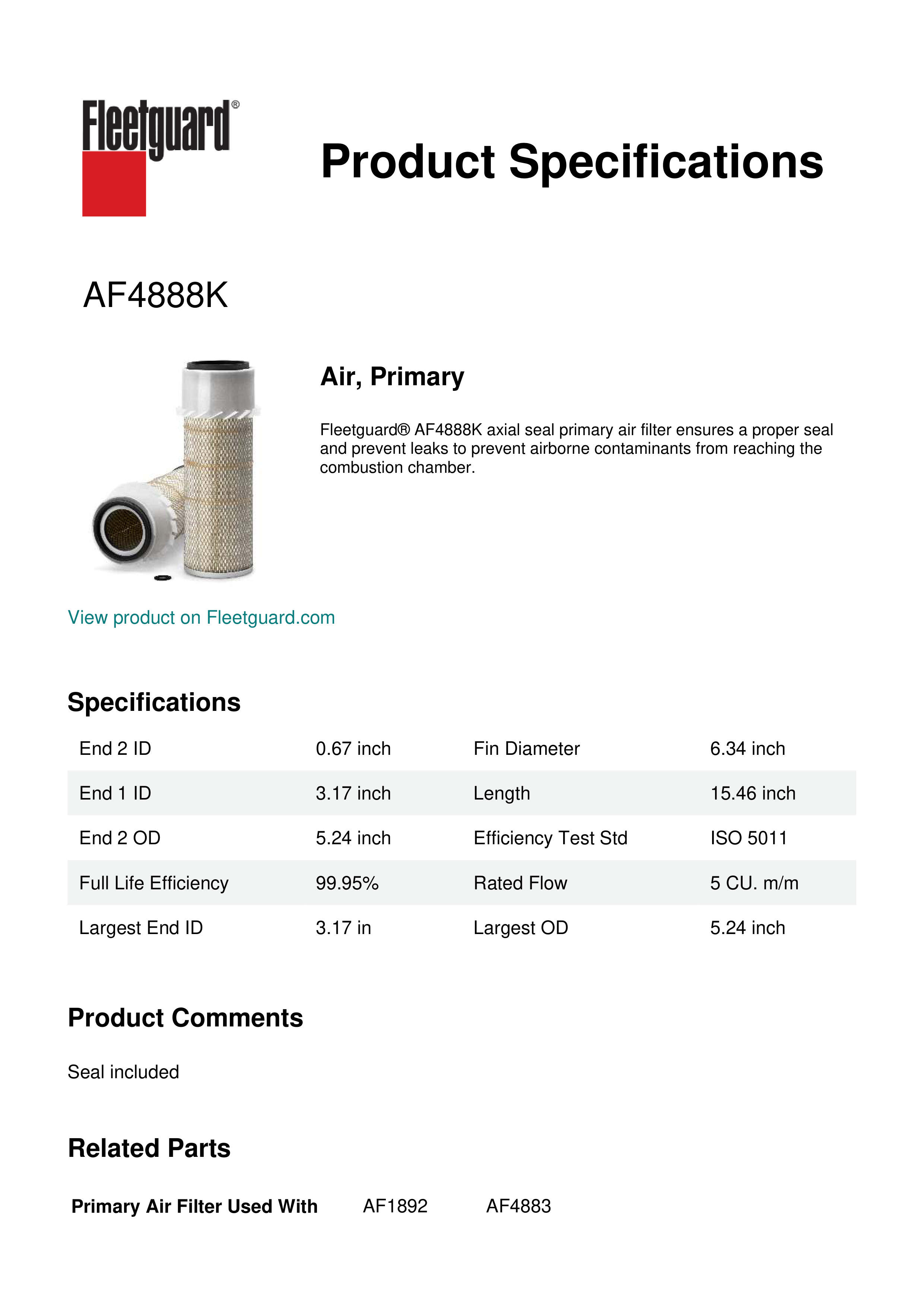 Fleetguard AF4888K Air, Primary