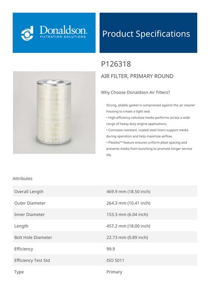 Donaldson P126318 Replaces the Fleetguard AF4897