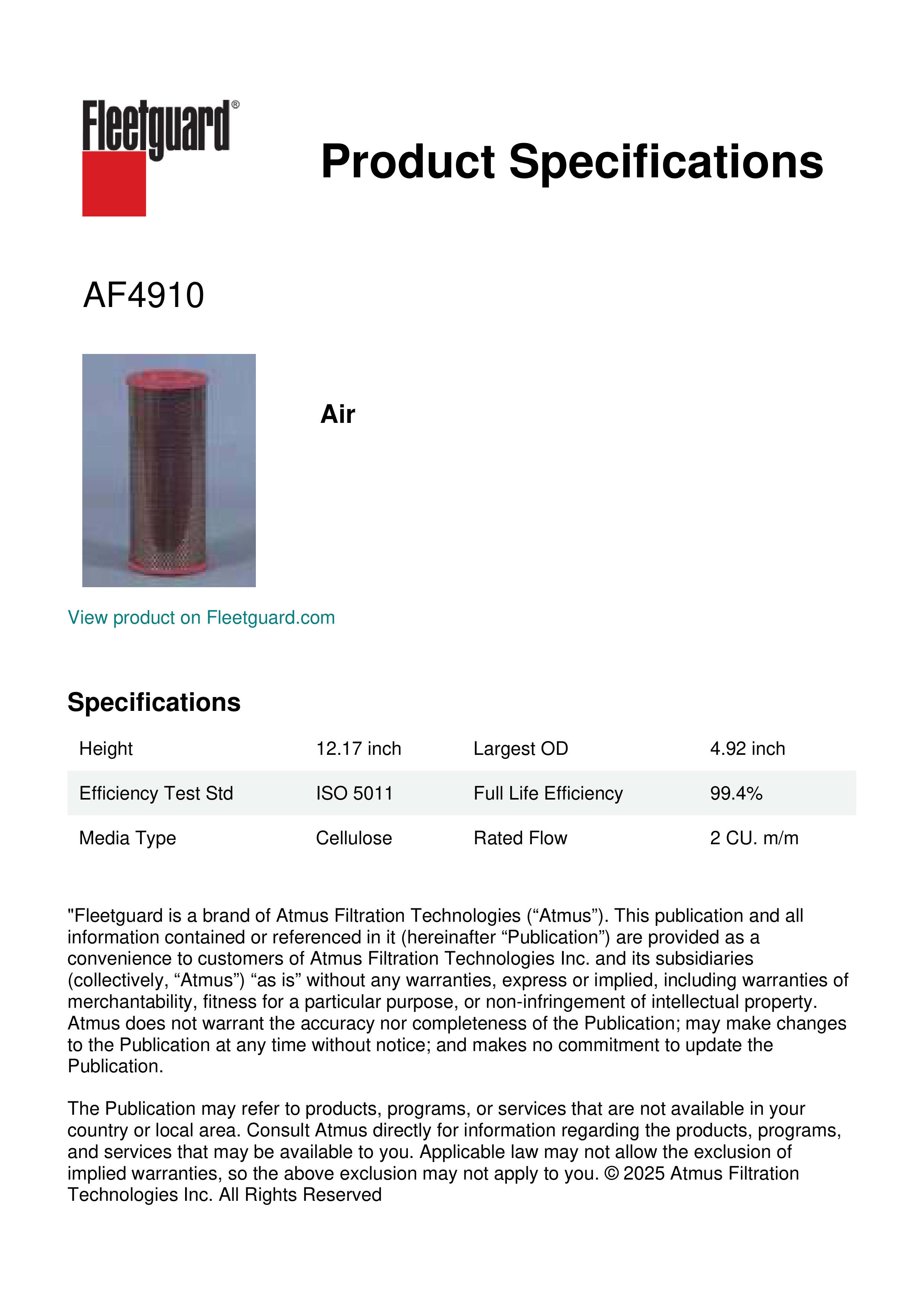 Fleetguard AF4910 Air