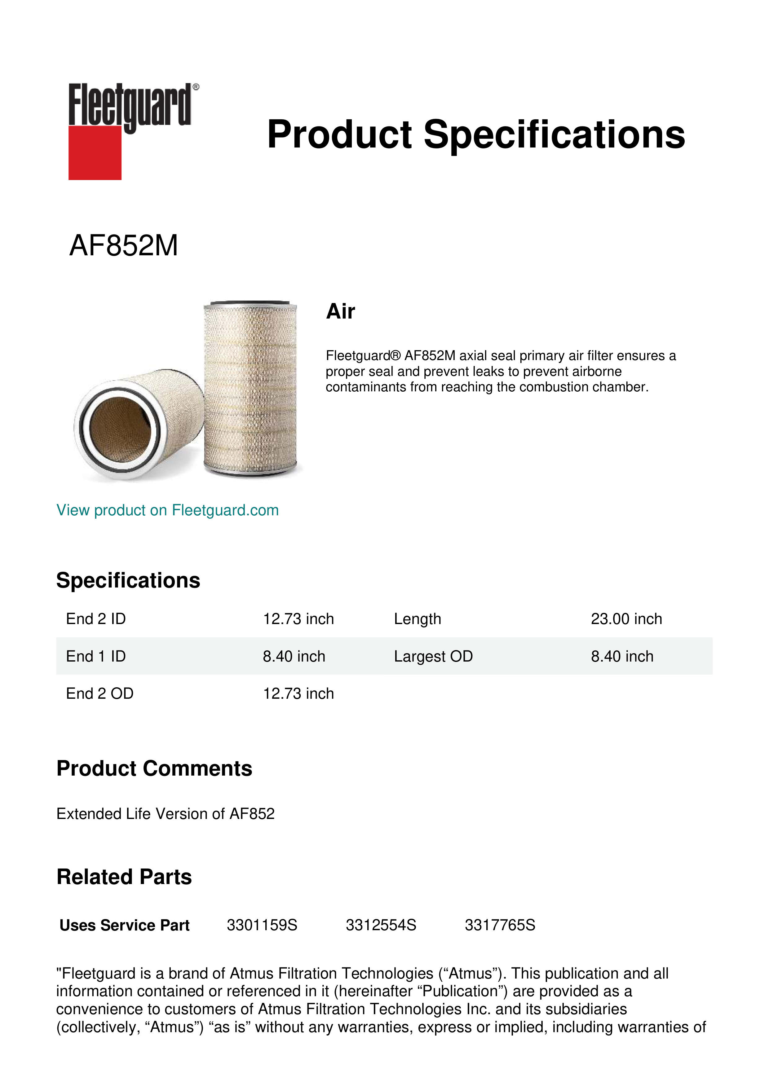 Fleetguard AF852M Air