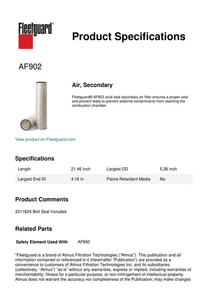 Fleetguard AF902 Replacement Air, Secondary