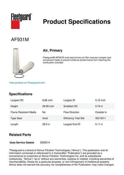 Fleetguard AF931M Air, Primary