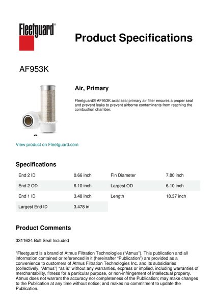 Fleetguard AF953K Air, Primary