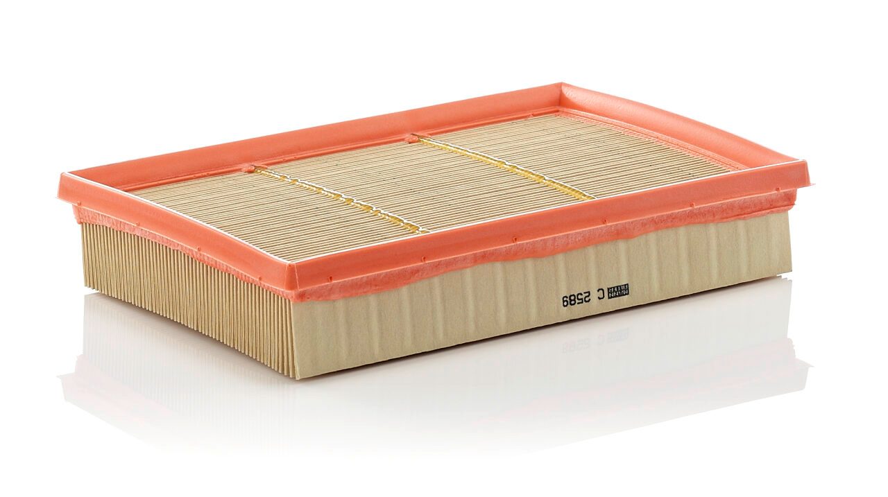 High-quality MANN-FILTER air filters for clean air intake and optimum protection for your engine, mass air flow sensor & other sensitive components / They meet requirements of modern engine technology. Highest dirt holding capacity and dirt separation efficiency, low flow resistance and high pleat stability ensure functional reliability during the entire service interval.