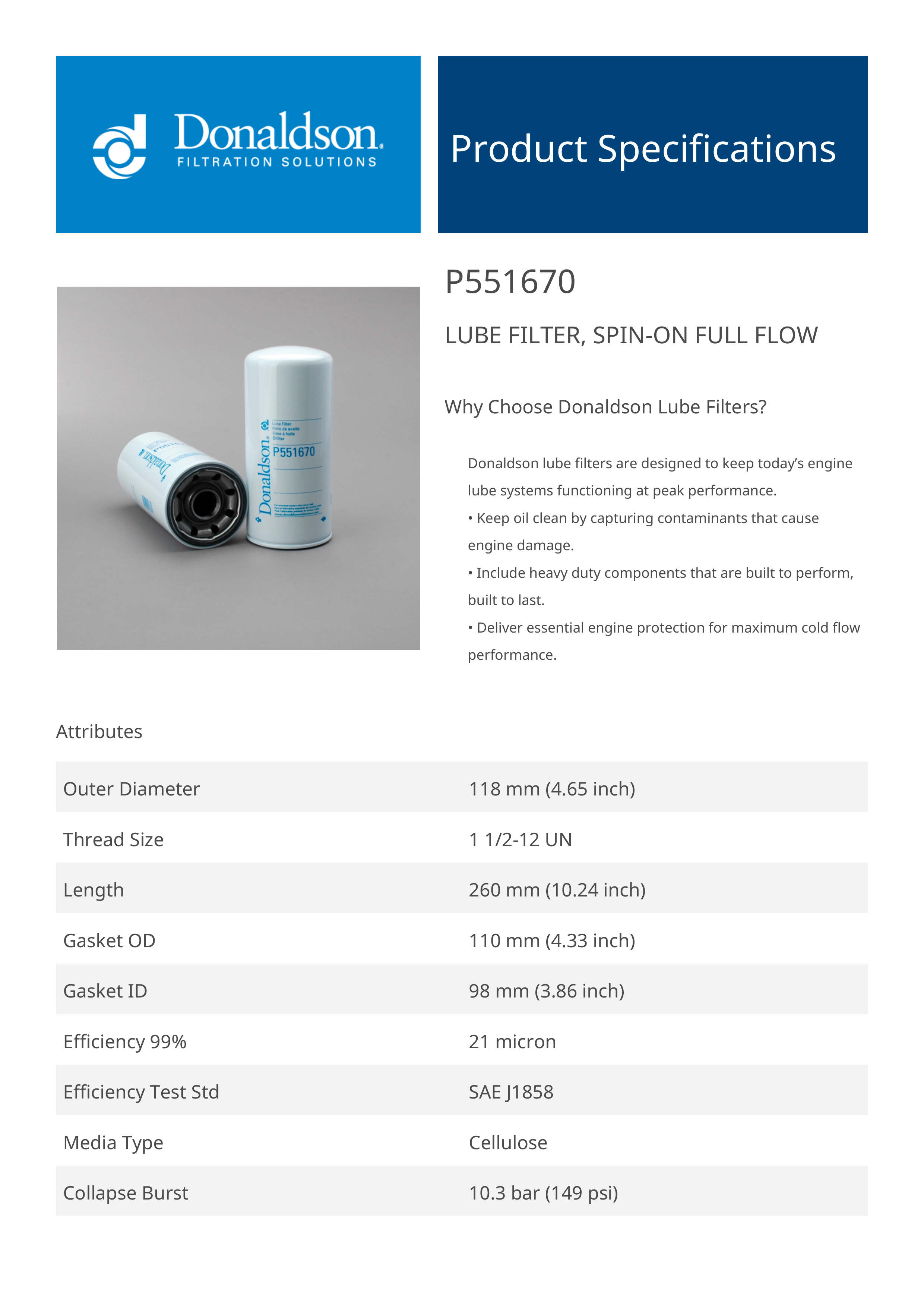 Why Choose Donaldson Lube Filters?Donaldson lube filters are designed to keep today’s engine lube systems functioning at peak performance.