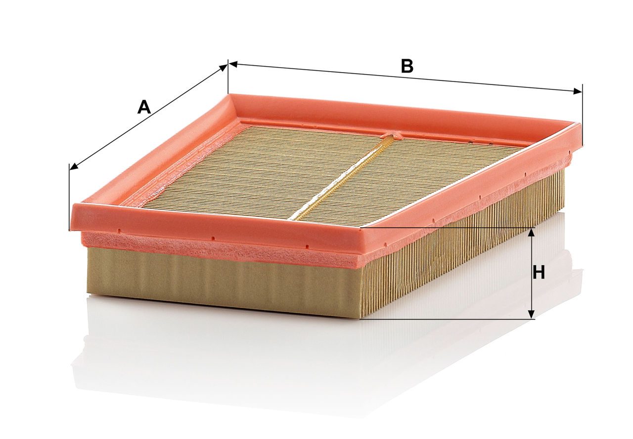 High-quality MANN-FILTER air filters for clean air intake and optimum protection for your engine, mass air flow sensor & other sensitive components / They meet requirements of modern engine technology. Highest dirt holding capacity and dirt separation efficiency, low flow resistance and high pleat stability ensure functional reliability during the entire service interval.